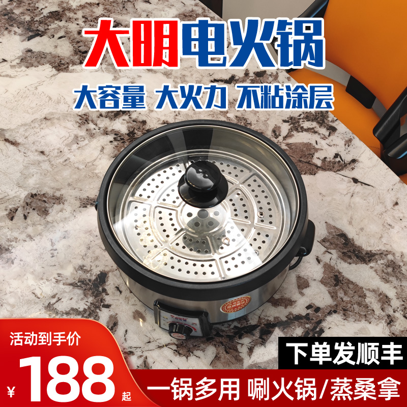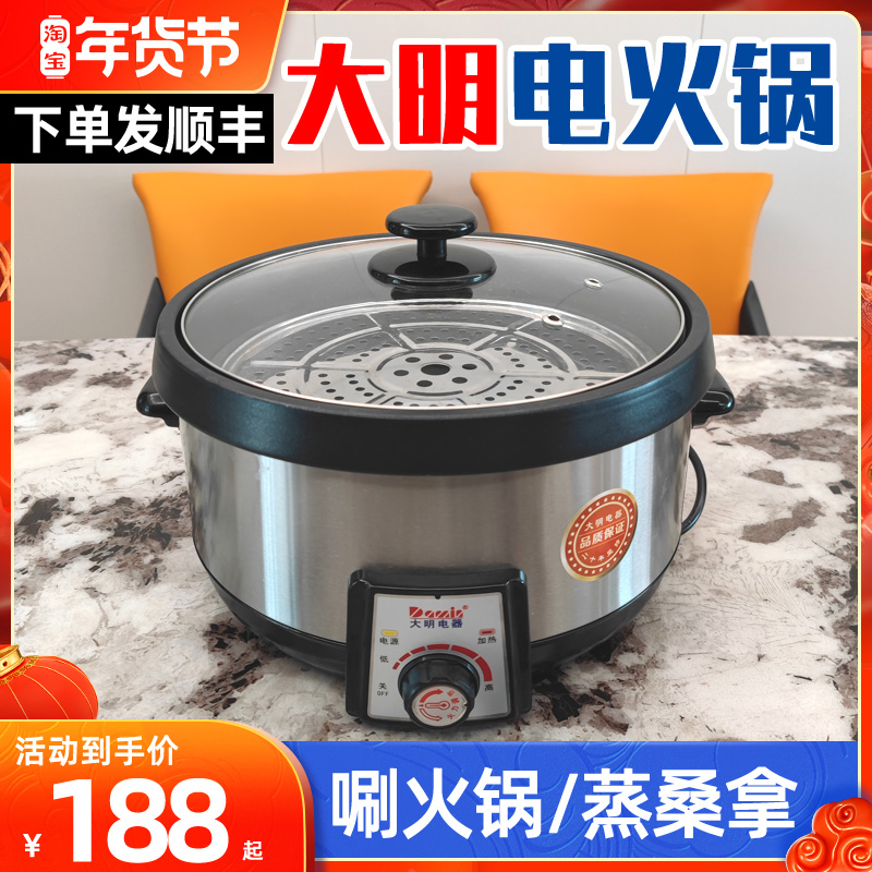 • 大明电器火锅8L电煮锅大容量电火火锅家用电桑拿锅多功能锅电热锅