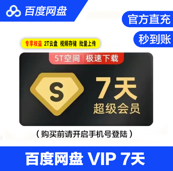 【直充秒到】百度网盘会员Svip7天会员加速超级vip极速下载不限速