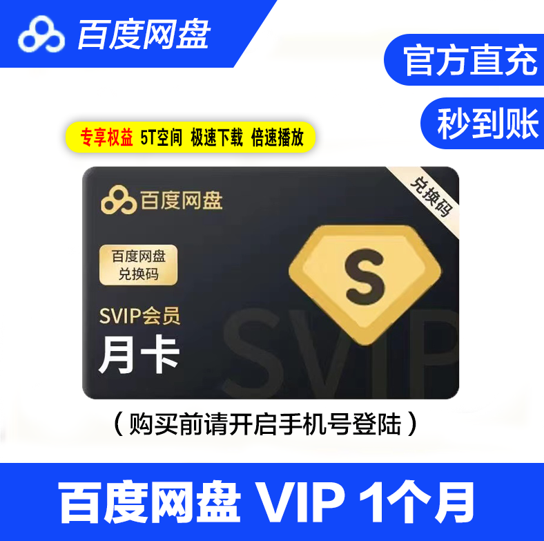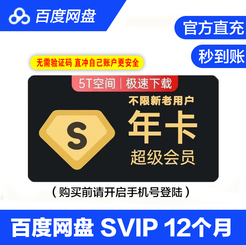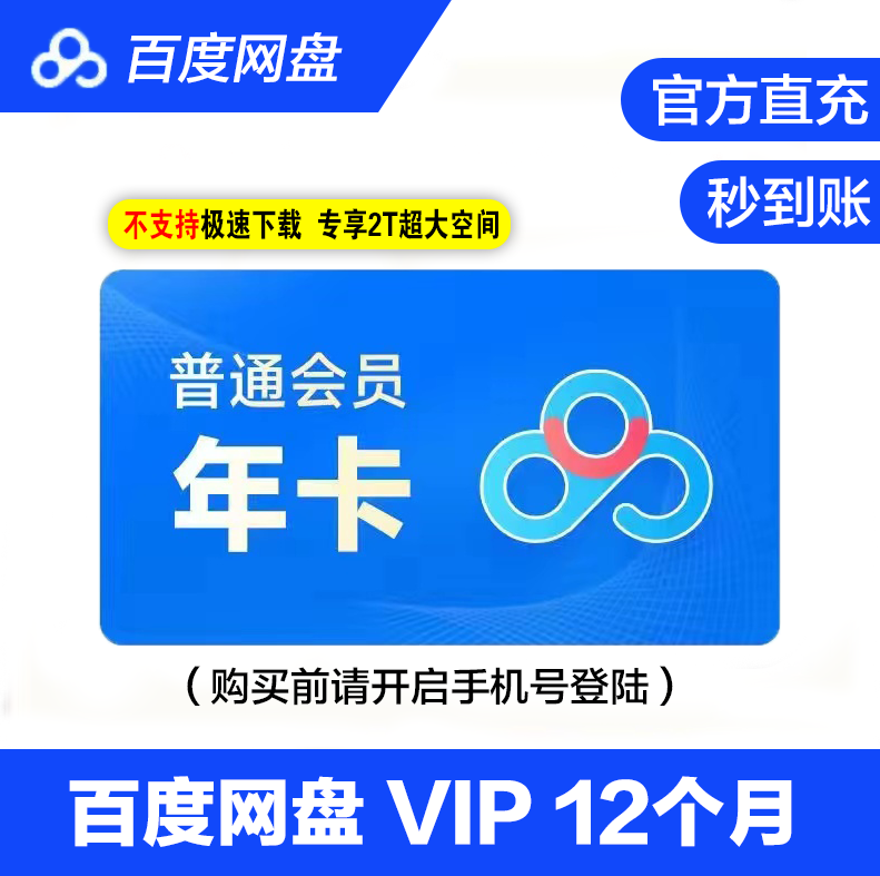 【直充】百度网盘超级SVIP会员年卡/普通会员年卡 极速下载