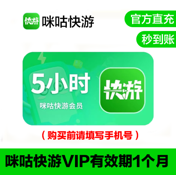 【不支持电视端】咪咕快游会员1个月/有效期时长5小时